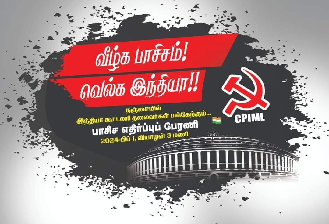 அந்த நாடு தழுவிய இயக்கத்தின் ஒரு பகுதியாக, 'வீழ்க பாசிசம், வெல்க இந்தியா' என போர்ப்பறை முழங்கி, தஞ்சைத் தரணியிலே பிப்ரவரி 1 அன்று, ஒரு மாபெரும் பேரணி நடத்திட தமிழ் நாட்டில் அறைகூவல் விடுத்திருக்கிறது சிபிஐ எம்எல் கட்சி.