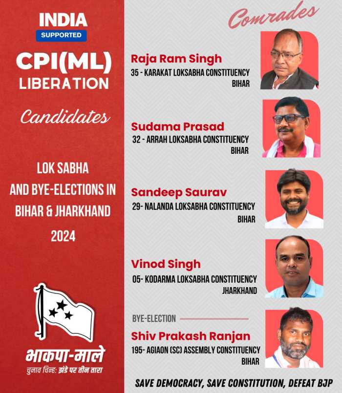 இந்தியா கூட்டணியில், பீகார் மாநிலத்தில் அர்ரா, காராக்கட், நலந்தா; ஜார்கண்ட் மாநிலத்தில் கோடர்மா மக்களவைத் தொகுதிகளிலும் பீகார் மாநிலம்