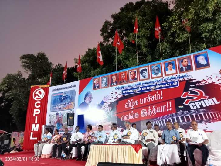 பொதுக் கூட்டத்தில், விசிக தலைவர் தோழர் தொல்.திருமாவளவன் பேசுகையில், 'வீழ்க பாசிசம் வெல்க இந்தியா' என்ற முழக்கத்துடன் சிபிஐஎம்எல் நடத்துகிற பொதுக்கூட்டம் வெற்றிகரமாக நடைபெற்றுக் கொண்டிருக்கிறது. இந்த நிகழ்ச்சியில் பங்கேற்க வேண்டும் என்பதற்காகவே நான் இரண்டு நாட்களாக நாடாளுமன்றம் செல்வதைக் கூட தவிர்த்துவிட்டு வந்து உங்கள் முன்னால் நின்று கொண்டிருக்கிறேன். ஒரு நாளைக்காக, நாடாளு மன்றத்தில் பங்கேற்பதை விட அங்கே சென்று அவர்கள் மக்களை ஏய்க்கும் வரியைத் தாக்கல் செய்யும் உரையைக் கேட்பதைவிட, இந்த நாட்டைக் காப்பாற்றுவதற்கு, ஜனநாயகத்தைக் காப்பாற்று வதற்கு, இந்தியா கூட்டணி வெல்ல வேண்டும் என்று உழைப்பதற்கு முன்வந்துள்ள சிபிஐஎம்எல் கட்சி மாநாட்டில் பங்கேற்பதுதான், மக்களைச் சந்திப்பது தான், மக்கள் முன் உரையாற்றுவதுதான் தேவை யானது முதன்மையானது என்ற அடிப்படையில் நான் உங்கள் முன்னால் வந்து நிற்கிறேன். இந்த நல்வாய்ப்பை எனக்களித்த சிபிஐஎம்எல் கட்சி மாநிலச் செயலாளர் பழ.ஆசைத்தம்பி அவர்களுக்கும் மற்றும் சிபிஐஎம்எல் தலைவர்களுக்கும் எனது நன்றியைத் தெரிவித்துக் கொள்கிறேன். அதேபோல், ஜனவரி 26 அன்று நடைபெற்ற வரலாற்றுச் சிறப்பு மிக்க வெல்லும் ஜனநாயக மாநாட்டில் பங்கேற்று உரையாற்றிய சிபிஐஎம்எல் பொதுச் செயலாளர் தோழர் திபங்கர் அவர்களுக்கும் விடுதலைச் சிறுத்தைகள் கட்சி சார்பாக நன்றியைத் தெரிவித்துக் கொள்கிறேன். விடுதலைச் சிறுத்தைகள் கட்சி, திராவிடக் கட்சிகளோடு மட்டுமல்ல, எப்போதும் இடதுசாரிக் கட்சிகளோடும் தொடர்ந்து இணைந்தே செயல்பட்டுக் கொண்டிருக்கிறது. அதற்குக் காரணம் விடுதலைச் சிறுத்தைகள் கட்சி இடதுசாரி அரசியலை மையமாகக் கொண்டக் கட்சியாகும். கொள்கைப் பிடிப்புடன் செயல்படக் கூடியவர்கள் இடதுசாரிகள். சாதியக் கட்டமைப்புக்கு எதிராக களம் கண்டவர்கள் இடதுசாரிகள். சாணிப்பால் சவுக்கடியை எதிர்த்துப் போராடினார்கள், பண்ணை ஆதிக்கத்தை எதிர்த்து இரத்தம் சிந்தினார்கள். சீனிவாசராவ் உள்ளிட்ட தலைவர்கள், ஒடுக்கப்பட்ட மக்களுக்களோடு நின்று அவர்களை ஒடுக்குமுறைக்கு எதிராகப் போராட வைத்தவர்கள் இடதுசாரிகள். இடதுசாரிகளைக்கண்டு பிஜேபி அஞ்சுகிறது ஏனென்றால், அவர்கள் பிஜேபிக்கு கருத்தியல் ரீதியான எதிரிகள்.அதனால் தான், காங்கிரஸ் இல்லாத பாரதம் என்று சொல்லும் பிஜேபி இடதுசாரிகள் இல்லாத பாரதம் என்று சொல்கிறார்கள் என்று கூறினார்.