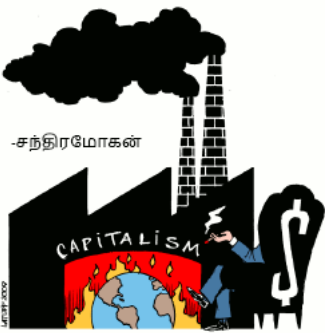 ஏகாதிபத்திய - முதலாளித்துவ பொருளுற்பத்தி முறையே இன்று நாம் எதிர்கொள்ளும் காலநிலை மாற்றத்திற்கு அடிப்படை காரணமாகும். ஆலைகள் வெளியேற்றும் இரசாயன கழிவுகளால் நீர், நிலம், காற்று மாசுபடுதல்; கனிமங்களுக்காக மலைகள் வெட்டப்படுதல், ஆற்று மணல், கடற்கரை தாது மணல் கொள்ளை, அணு உலை கழிவுகள், ரசாயன உரங்கள் போன்றவற்றால் இயற்கை சீரழிக்கப்படுகிறது. இவை அனைத்தும் புவியை அதீத வெப்பமயமாக்குகின்றன, சுற்றுசூழல் நெருக்கடிகளுக்கு காரணமாக அமைகின்றன.