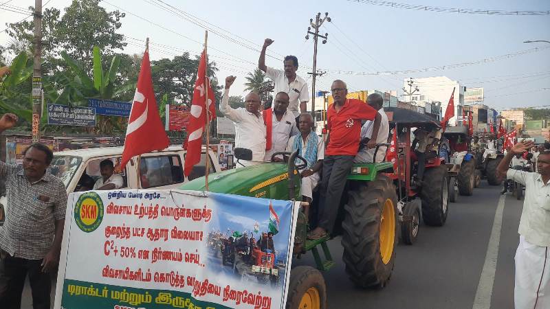 ஊர்வலத்திற்கு ஏ.ராமமூர்த்தி (தவிச மாவட்ட செயலாளர் & SKM மாவட்ட ஒருங்கிணைப்பாளர்) தலைமை தாங்கினார். எம்.லகுமய்யா, (மாநில துணைத்தலைவர், தவிச) டிராக்டர் ஊர்வலத்தைத் துவக்கி வைத்தார்.