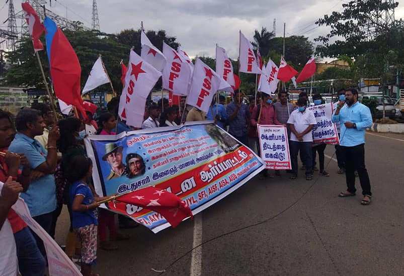 அக்னிபாத் திட்டத்தை திரும்ப பெற கோரி கோவை மாவட்டத்தில் இடதுசாரி - இளைஞர்-மாணவர் கூட்டியக்க கண்டன ஆர்ப்பாட்டம் நடைபெற்றது!