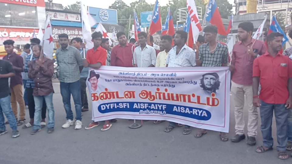 ஜூலை 04, 2022 தஞ்சாவூர் மாவட்டத்தில் இடதுசாரி இளைஞர்-மாணவர் கண்டன ஆர்ப்பாட்டம்.