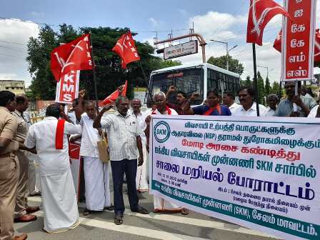 சேலத்தில் SKM ஐக்கிய விவசாயிகள் சங்கம் மறியல் போராட்டம் கைது