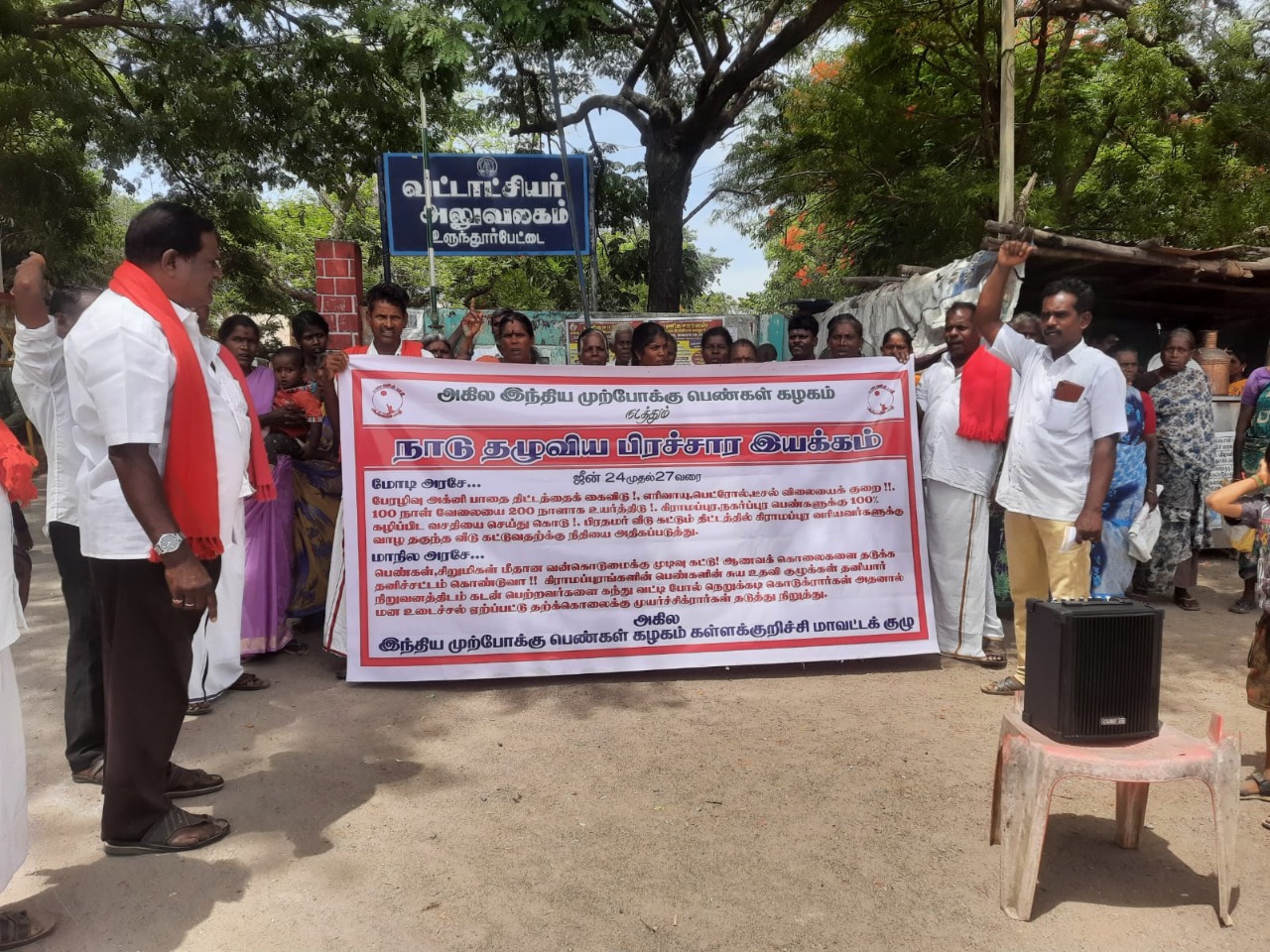 ஜூன் 27, 2022 கள்ளக்குறிச்சி மாவட்டம், உளுந்தூர்பேட்டை வட்டாச்சியர் அலுவகம் எதிரில் அகில இந்திய முற்போக்கு பெண்கள் கழகம் சார்பில் நாடு தழுவிய இயக்கம் (ஜூன் 20-27 வரை) தோழர் செல்வி தலைமையில் கண்டன ஆர்ப்பாட்டம் நடைபெற்றது.