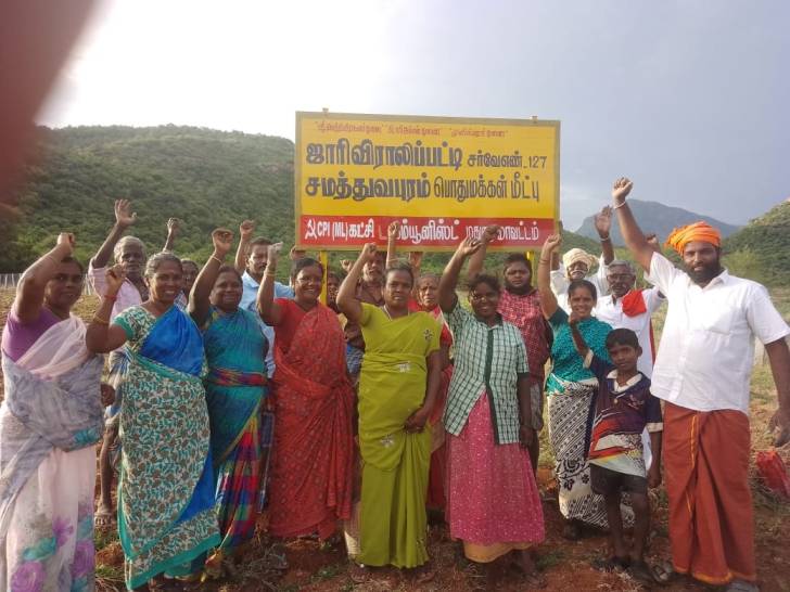 அந்த ஊருக்கும் மலைக்கும் இடைப்பட்ட சர்வே எண் 127 என்ற அரசு நிலத்தை (ஓடையை ஒட்டியுள்ள நிலம்) தனியார் ஒருவர் 10 லட்சம் ரூபாய்க்கு, முந்தைய ஆக்கிரமிப்பாளரிடமிருந்து வாங்கியிருக்கிறார். பொது நிலத்தின் பரப்பு 10.95 ஏக்கர். அதனைச் சுற்றி வேலி எழுப்பினார்.இதனால், கோப மடைந்த மக்கள் சிபிஐ எம்எல் கட்சியை அணுகினர். கட்சியின் சார்பில் மாவட்ட ஆட்சிய ருக்கு 24.01.2023 அன்று புகார் அளிக்கப்பட்டு நெருக்கடி கொடுக்கப்பட்டது. வருவாய் துறையின் எச்சரிக்கையைத் தொடர்ந்து ஆக்கிரமிப்பாளர் வேலியை அகற்றினார். புறம்போக்கின் தெற்குப் பகுதியில் அவரது ஆக்கிரமிப்பு வேலி நீடிக்கிறது என்று கருதிய மக்கள் மீண்டும் நில அளவை கோரி, கட்சியின் கிளைச் செயலாளர் தோழர் ஒச்சா தேவர் முன்முயற்சியில் வருவாய் துறைக்கு நெருக்கடி கொடுத்தனர். நில அளவைக்கு பணம் கட்டும்படி ஊராட்சியை நிர்ப்பந்தம் செய்தனர். நில ஆக்கிரமிப்பாளருக்குத் துணையாக இருந்த உள்ளாட்சி தலைவரும் அவரின் கணவரும் முதலில் மறுத்தனர். மக்களின் கோபத்தைச் சமாளிக்க முடியாமல், வேறுவழியின்றி, பணத்தைக் கட்டினர். இருந்தாலும், நில அளவை செய்யாமல் வருவாய் துறை இழுத்தடித்தது.