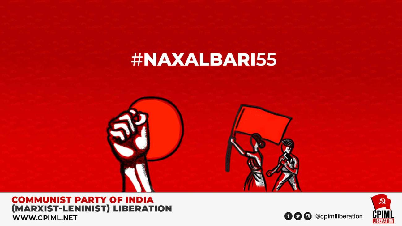நக்சல்பாரியின் 55 வது ஆண்டு நினைவு நாளில், இந்த இயக்கத்தின் அனைத்து தியாகிகளுக்கும், ஒரு மகத்தான நோக்கத்திற்காக தங்கள் வாழ்க்கையை அர்ப்பணித்த தலைவர்கள், செயல்வீரர்களுக்கும், இந்தியா முழுவதும் அதன் செய்தியை பரப்பிய அனைத்து கவிஞர்கள், பாடகர்கள், கதைஞர்கள் அனைவருக்கும் ஆழ்ந்த மரியாதையை நாங்கள் செலுத்துகிறோம். மிகப் பெரும் அடக்குமுறைகளைத் தாங்கிக் கொண்டு, தங்களின் தைரியத்தாலும் ஆற்றலாலும் அன்பாலும் இயக்கத்தை நிலைநிறுத்திய, போராட்டத்தின் அனைத்துப் பகுதிகளிலும் உள்ள மக்களுக்கும் ஆழ்ந்த மரியாதை செலுத்துகிறோம். அடக்குமுறை மற்றும் அநீதிக்கு எதிரான மக்கள் எதிர்ப்பினுடைய தணியாத உணர்வின் உருவகமாக நக்சல்பாரி மாறியுள்ளது. அதிகார வெறி பிடித்த ஆட்சியாளர்களின் ஆணவத்துக்கும் முரட்டுத்தனத்திற்கும் முன்னால், போராடும் மக்கள் பெருந்திரளின் புரட்சிகரமான புன்னகை அது. போராட்டம் முடிந்து விடவில்லை. எனினும் மக்களுக்கே இறுதி வெற்றி. நக்சல்பாரிக்கு செவ்வணக்கம்!
