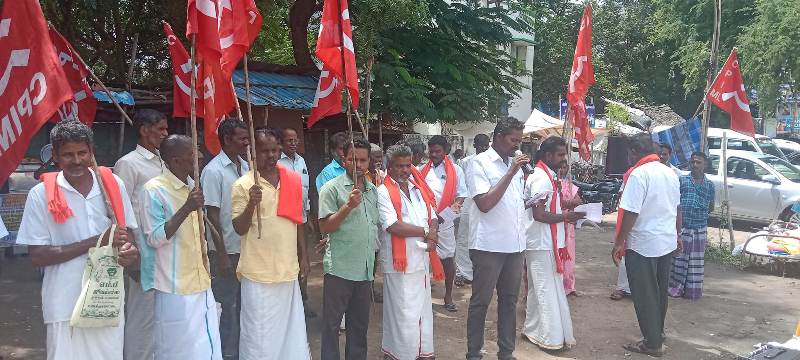 ஆர்ப்பாட்டத்தை விளக்கி மாவட்ட செயலாளர் தோழர் கலியமூர்த்தி, அனைத்திந்திய விவசாய கிராமப்புற தொழிலாளர் சங்கம் மாநில செயலாளர் தோழர் ராஜசங்கர் விளக்கி பேசினார்.
