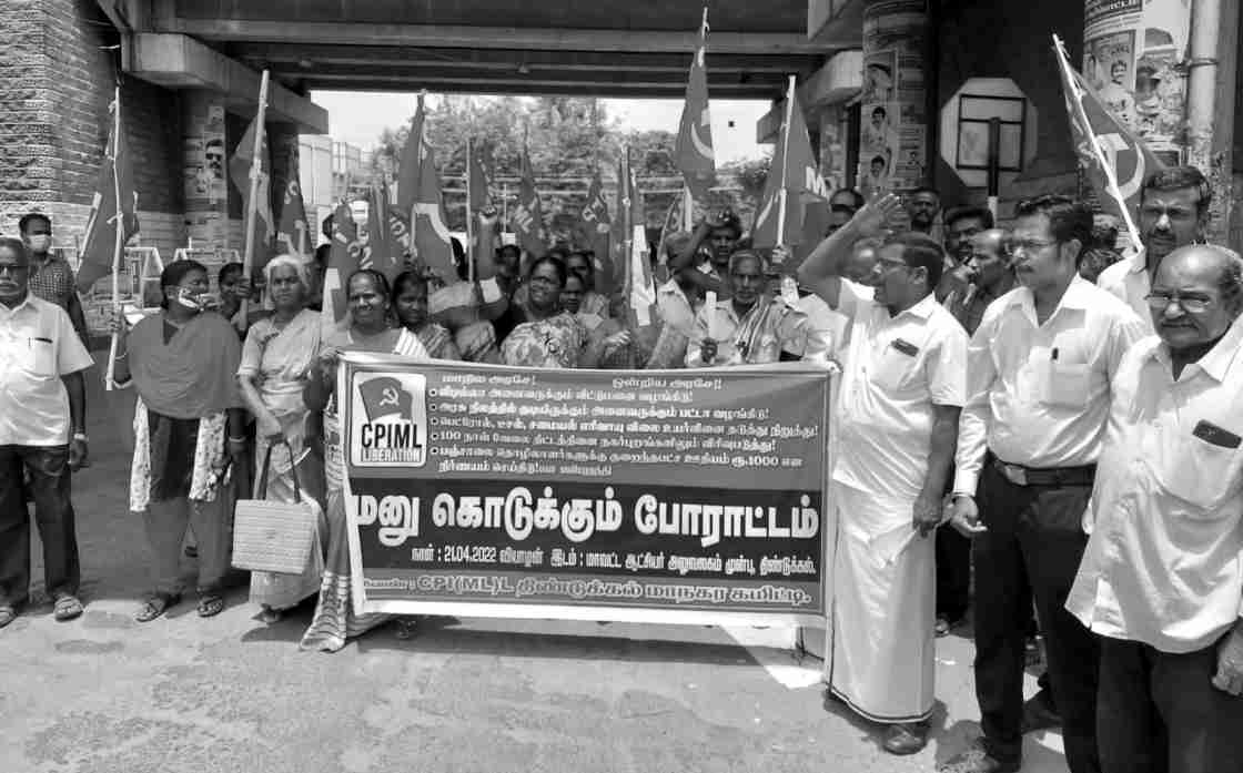 - பெட்ரோல், டீசல், சமையல் எரிவாயு விலை உயர்வை கட்டுப்படுத்த வலியுறுத்தியும் இந்திய கம்யூனிஸ்ட் கட்சி (மார்க்சிஸ்ட்&லெனினிஸ்ட்) விடுதலை திண்டுக்கல் மாநகரக் கமிட்டி சார்பில் 21.4.22 அன்று மாவட்ட ஆட்சியர் அலுவலகம் முன்பு மனு கொடுக்கும் போராட்டம் தோழர் சுப்புராமன் தலைமையில் நடைபெற்றது. போராட்டத்தில் மாநில செயலாளர் தோழர் என்.கே. நடராஜன், தோழர் முருகேசன், தோழர் இரா.இரவி, தோழர் ரவிக்குமார், தோழர் ஜெகதீஸ்குமார், தோழர் ஜேசுராஜ் உட்பட 150க்கும் மேற்பட்டோர் கலந்து கொண்டனர்.