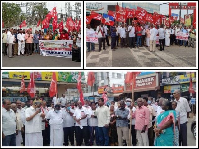 மே 26, 2022 கோவை மாவட்டம், சரவணம்பட்டி, கணபதி,சுந்தராபுரம் உள்ளிட்ட இடங்களில் CPIML, CPIM, CPI, VCK உள்ளிட்ட கட்சிகள் சார்பில் மோடி அரசின் மக்கள் விரோதப் போக்கைக் கண்டித்து, விலையை குறைக்கவும், வேலை கொடுக்க வேண்டியும், மதவெறுப்பு அரசியலை கைவிடக் கோரியும்… கண்டன ஆர்ப்பாட்டம் நடைபெற்றது!