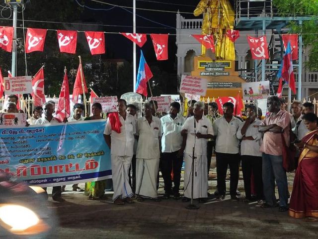 மே 26, 2022 மதுரை மாவட்டத்தில் CPIML, CPIM, CPI, VCK உள்ளிட்ட கட்சிகள் சார்பில் மோடி அரசின் மக்கள் விரோதப் போக்கைக் கண்டித்து, விலையை குறைக்கவும், வேலை கொடுக்க வேண்டியும், மதவெறுப்பு அரசியலை கைவிடக் கோரியும்… கண்டன ஆர்ப்பாட்டம் நடைபெற்றது!