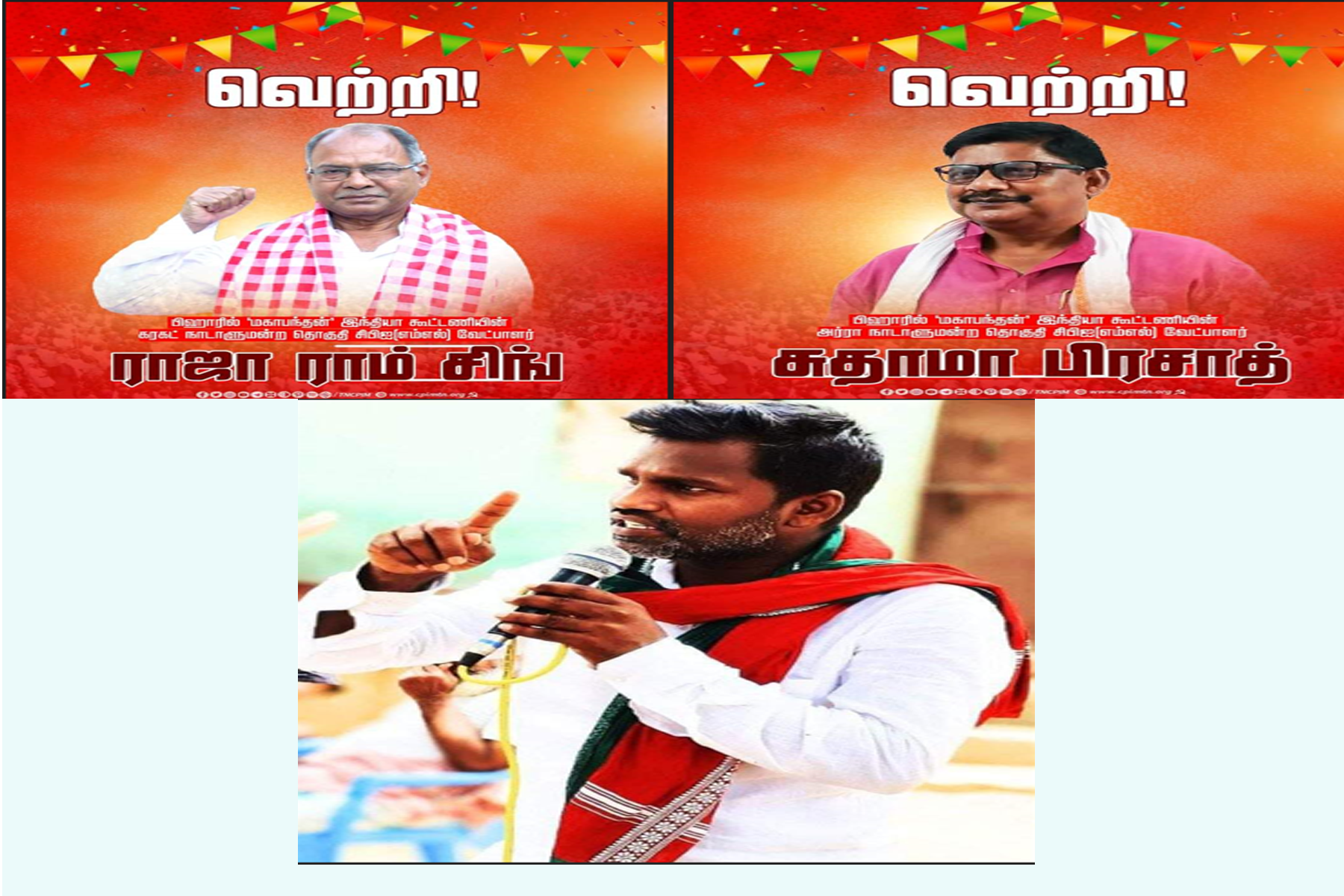கிட்டத்தட்ட இரண்டு மாதத் தேர்தல் பரப்புரை இயக்கத்தில் பீகார் முழுவதற்கும் நூற்றுக்கணக்கான பேரணிகள், சாலைவழி பரப்புரைகள், பொதுக்கூட்டங்கள் நடைபெற்றன. இந்த நிகழ்வுகளில் இந்தியா கூட்டணியின் தலைவர்கள் கூட்டாக பங்கேற்று உரையாற்றினர். அத்தகைய பேரணிகளில் கடைசியாக நடைபெற்ற ஒன்றில், அரா நாடாளுமன்ற தொகுதி வேட்பாளர் சுதாமா பிரசாத், அகியோன் சட்டமன்ற தொகுதி இடைத்தேர்தல் வேட்பாளர் சிவப்பிரகாஷ் ரஞ்சன் ஆகியோரை ஆதரித்து, போஜ்பூரின் கதாணி மேளா மைதானத்தில் நடைபெற்ற கூட்டத்தில், தோழர் திபங்கர், தேஜஸ்வி யாதவ் ஆகியோர் முக்கிய பேச்சாளர்களாக கலந்து கொண்டு உரையாற்றினர். மேலும் சுதாமா பிரசாத்துக்கு ஆதரவாக மே 27 அன்று ஜெகதீஷ்பூரில் நடைபெற்ற தேர்தல் பேரணியில், காங்கிரஸ் தலைவர் ராகுல் காந்தியுடன் இணைந்தும் அவர்கள் உரையாற்றினர்.