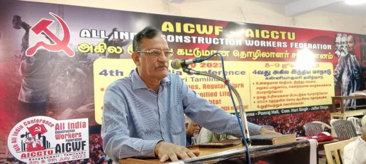 நாம் சரியான நேரத்தில் இந்த மாநாட்டை கட்டமைத்திருக்கிறோம். இந்த சூழல், தாக்குத லுக்கு எதிராக ஒரு அவசர பதில் வினையைக் கோருகிறது. ஆகவே தான், நாம் புதிய திசைவழி பற்றி பேசுகிறோம். மோடி அரசு தொழி லாளர்களின் எல்லா உரிமைகளையும் பறிக்கிறது. அவர்கள் தெளிவாக ஒரு செய்தியைச் சொல் கிறார்கள். 1996ஆம் ஆண்டு கட்டுமான தொழிலாளர் சட்டத்தை இல்லாது ஒழிப்போம் என்பதுதான் அந்த செய்தி. 2024 நாடாளுமன்ற தேர்தல் அதிமுக்கியத்துவம் வாய்ந்த தேர்தல். ஒவ்வொரு ஐந்து ஆண்டுகளுக்கு ஒரு முறை வரும் நாடாளுமன்றத் தேர்தலாக இந்தத் தேர்தலைப் பார்க்க முடியாது, கூடாது. மோடி மீண்டும் ஆட்சிக்கு வந்தால் எதுவும் மிச்சம் இருக்காது. ஆகவேதான், இது 'செய் அல்லது செத்துமடி' என்பதற்கான சூழலாக இருக்கிறது. பெருந்தொற்று காலத்தில் கட்டுமானத் தொழி லாளர்கள் கடும் துன்ப, துயரங்களை அனுபவித் தார்கள். புலம்பெயர்ந்த தொழிலாளர்கள் சொல்லொண்ணாத் துயரத்திற்கு உள்ளானார்கள். இந்தப் பின்னணியில்தான் நமது தொழிற்சங்க வேலையை மறு திசைவழிப் படுத்த வேண்டும் எனச் சொல்கிறோம். நல வாரியத்தை மையமாகக் கொண்ட வேலையை மாற்றி அமைக்க வேண்டும். நமது முழக்கம் "சங்கம் முதலில், வாரியம் இரண்டாம் பட்சம்' என்பதாக இருக்கிறது. பல வகை தொழிலாளர்களுக்கான வாரியம் உள்ளது. புதிய சமூகப் பாதுகாப்பு பற்றி அரசாங்கம் பேசி வருகிறது. அது என்ன புதிய சமூக பாதுகாப்பு? இஸ்ரம் போர்ட்டலா? அல்லது எல்லா தொழிலுக்கும் பொதுவான வாரியமா? என்னவென்று தெரியவில்லை. உரிமைகள் பறிக்கப்பட்டு கொண்டிருக்கும் போது, பழைய பாணியில் நாம் நமது தொழிற்சங்க வேலைகளைத் தொடர முடியாது. நாம் நமது உரிமைகளை மீட்டெடுக்க வேண்டும். நாம் சந்திக்கக்கூடிய பிரச்சனை என்ன? நமது போராட்டம் எப்படி இருக்க வேண்டும்? யாரைக் கூர்மைப்படுத்தி இருக்க வேண்டும்?