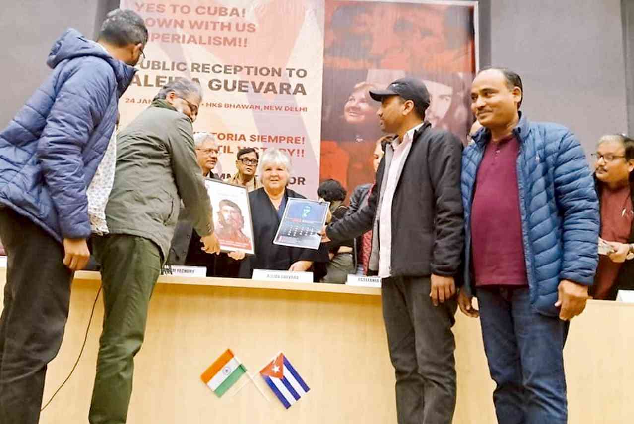 புரட்சியாளர் சேகுவாராவின் மகள் அலைடா குவாரா இந்தியாவிற்கு வந்தபோது டெல்லியில் வரவேற்பு அளிக்கப்பட்டது. அந்த நிகழ்ச்சியில் இகக(மாலெ) பொதுச் செயலாளர் தோழர் திபங்கர், இகக பொதுச் செயலாளர் து.ராஜா, இகக(மா) பொதுச் செயலாளர் தோழர் சீத்தாராம் யெச்சூரி, ஆர்ஜேடி நாடாளுமன்ற உறுப்பினர் மனோஜ் ஜா, கியூபாவின் தூதர் அலெக்ஸாண்டர் சிமன்காஷ் ஆகியோர் கலந்து கொண்டனர். அந்த நிகழ்வில் பேசிய அலைடா, பொருளாதார தடை பற்றி பேசுவது எளிதானது. ஆனால், அதை நேரில் அனுபவிக்கும்போதுதான் அது எவ்வளவு கஷ்டமானது என்பதை உணரமுடியும் என்றார். அவர் மேலும் நாங்கள் பொருளாதாரத் தடைக்கு எதிராக பல ஆண்டுகளாகப் போராடிக் கொண்டிருக்கிறோம். அதற்காக நாங்கள் பெரும் விலை கொடுத்துள்ளோம். கியூபாவிற்கு மருந்துகள் விற்றால் அந்த நிறுவனத்திற்கு அமெரிக்காவில் அபராதம் விதிக்கப்படும், கியூபாவுடன் வணிகம் செய்தால் அந்த நாட்டில் இருந்து தன்னுடைய முதலீட்டை அமெரிக்கா திரும்பப் பெற்றுக் கொள்ளும் என்றார்.